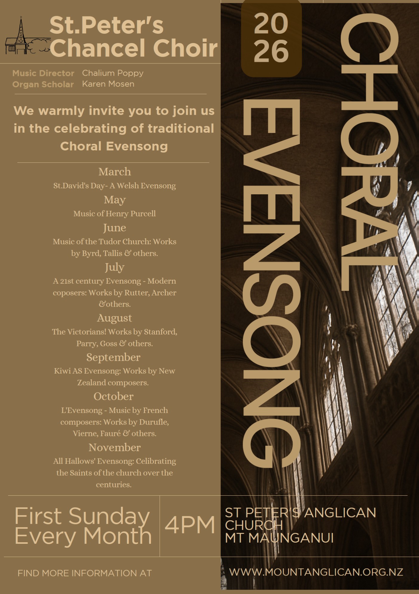 Bookmark this page, 'like' us on Facebook, and provide your e-mail so you don't miss out. Choral Evensong 2026 Click here to view